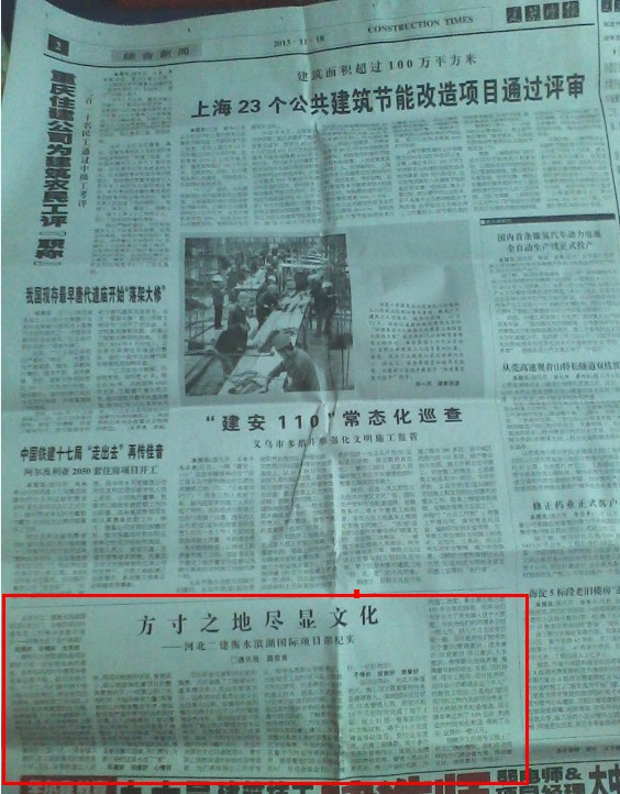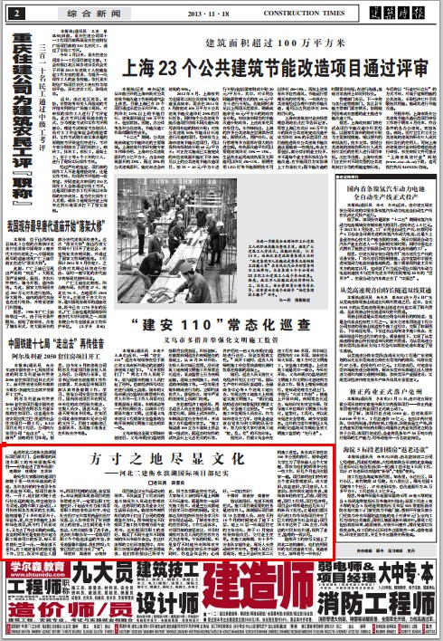 《建筑时报》报道我公司项目文化建设情况 来源: 修改时间:2013.11.25 浏览:6997 《建筑时报》报道我公司项目文化建设 2013年11月18日,《建筑时报》第2版以《方寸之地尽显文化》为题,报道我公司项目文化建设、职工小家建设事迹。 河北二建:上一条 返回列表 下一条